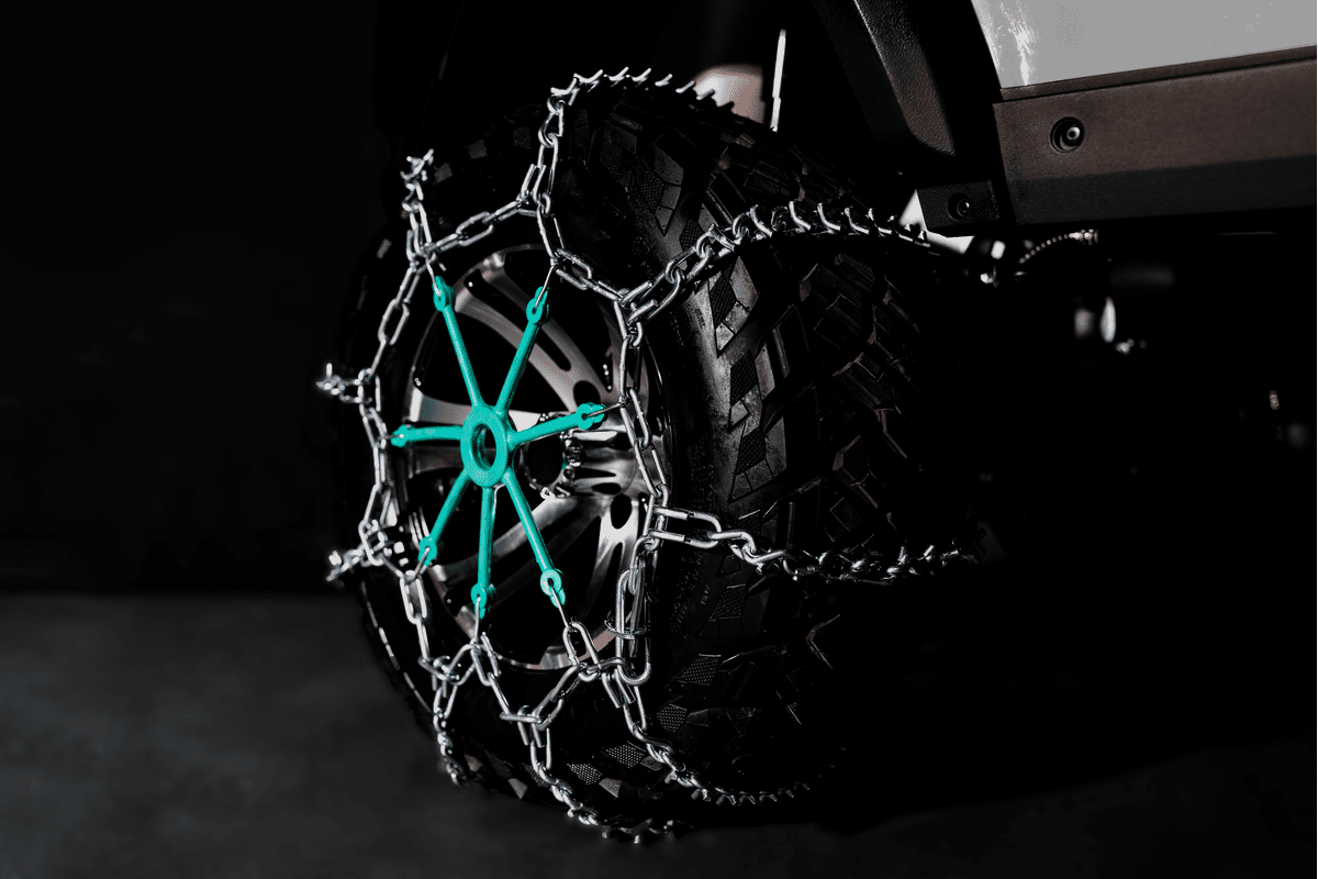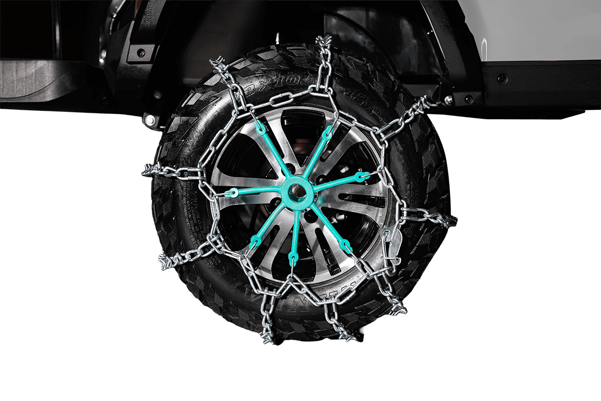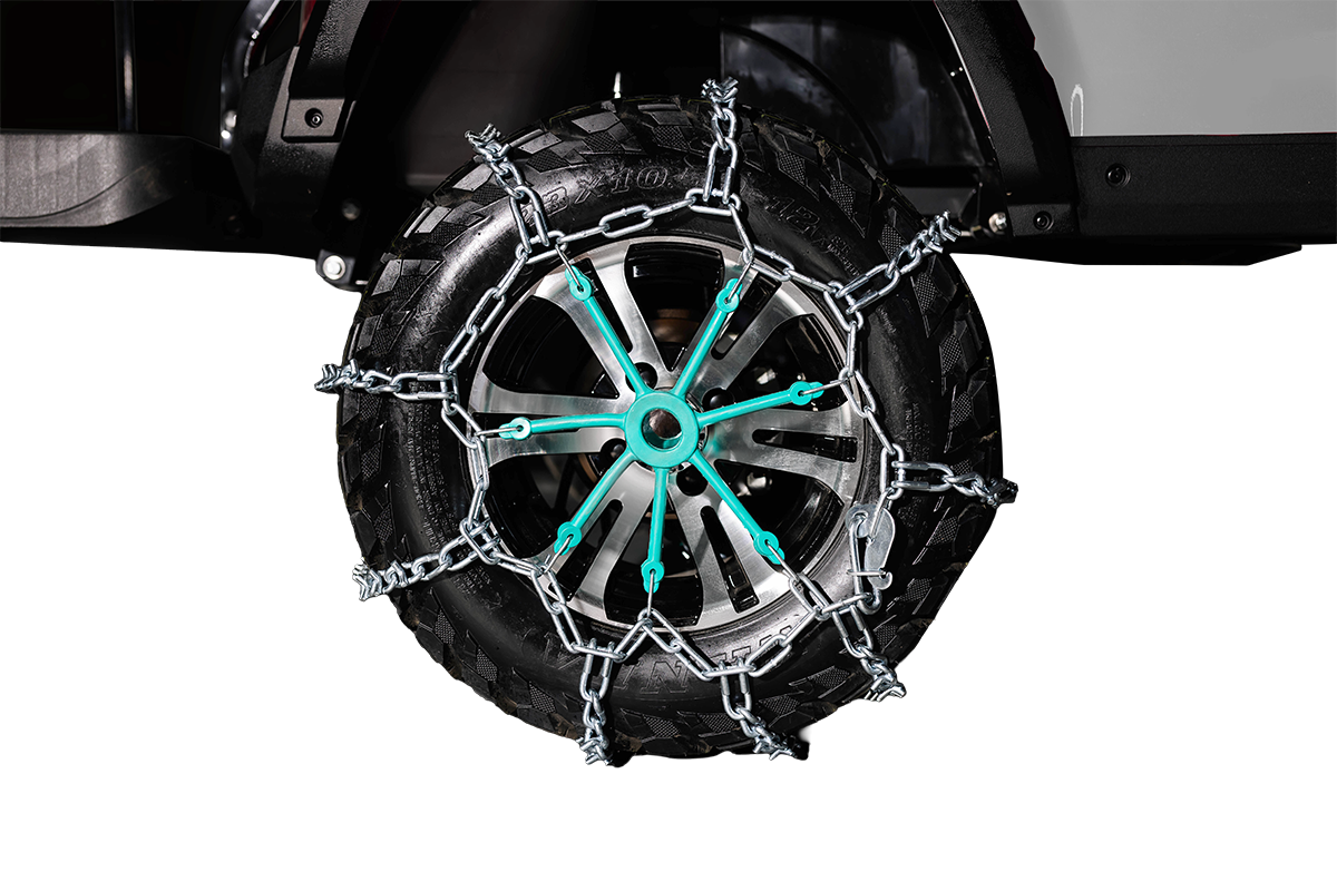 This set of 2 chains wraps around your tires for extra grip, helping prevent slipping and sliding on icy roads.