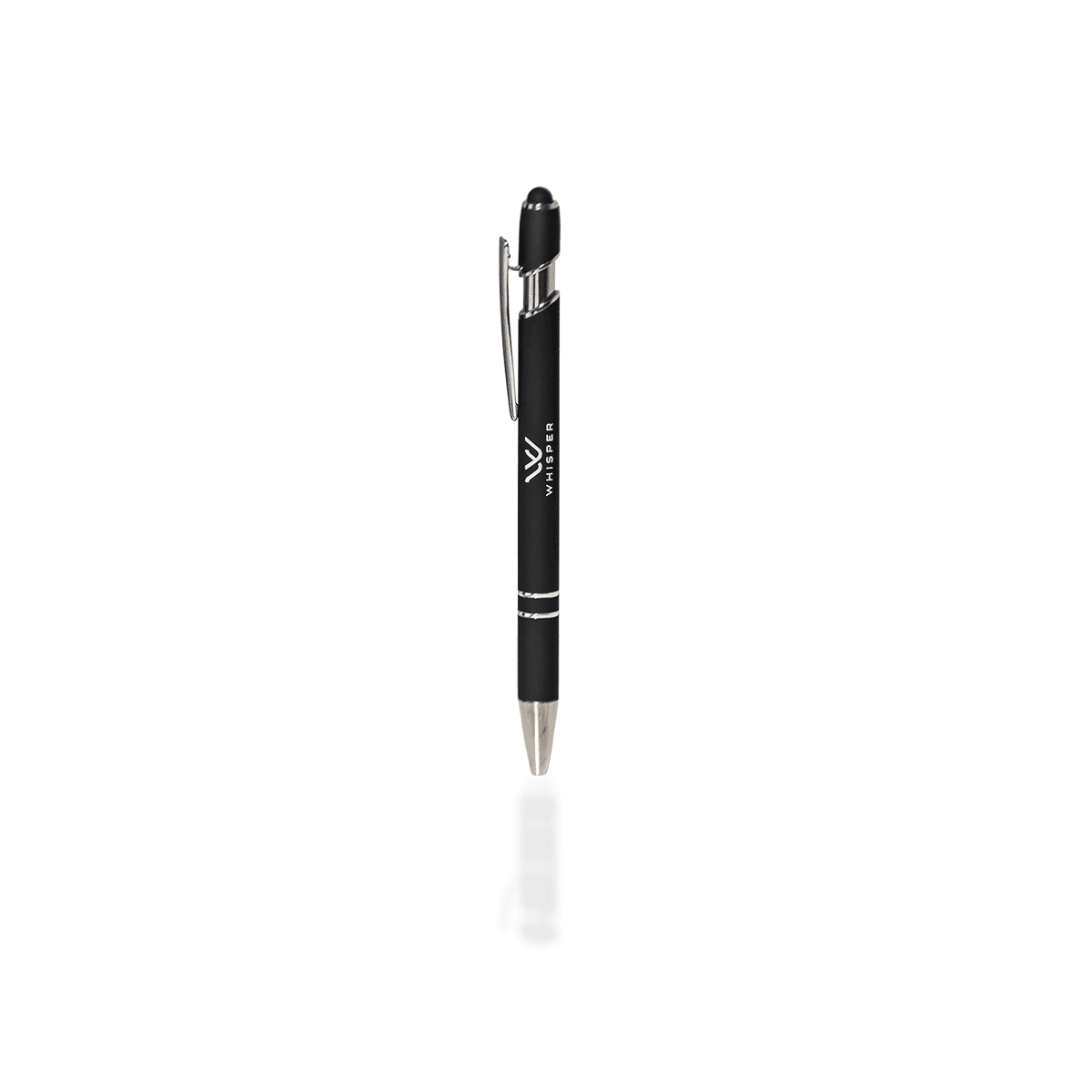 Perfect your penmanship with this black and silver ballpoint pen with a stylus top. Elegant design, a smooth matte finish, and a stylus top make this your new favorite pen.