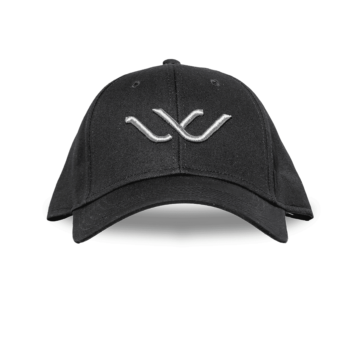 Whisper Silver Embroidered Logo Low Profile Baseball Hat – Black